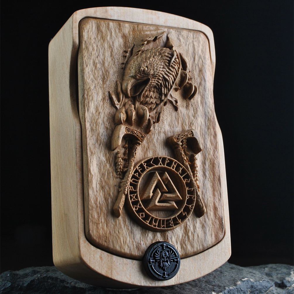 Darüber hinaus wird Deine Uhr in einem speziell geschnitztes Holzetui mit einer besonderen Figur aus der nordischen Geschichte geliefert.