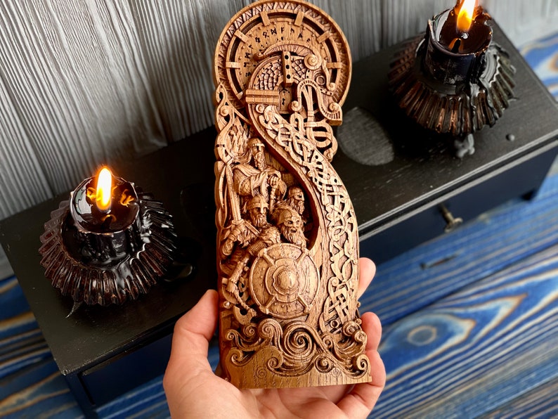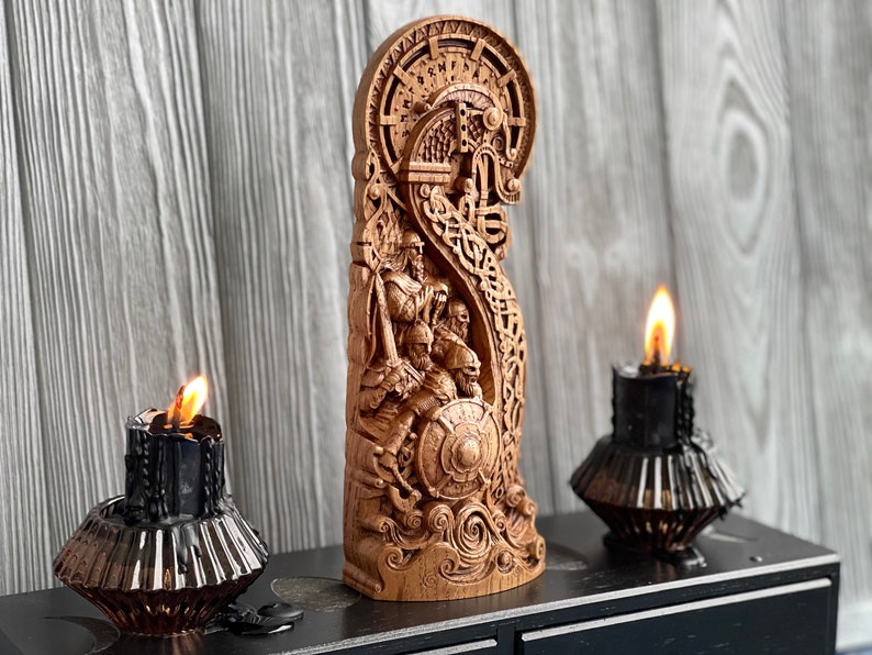 Entdecke die Magie der nordischen Mythologie mit unseren handgefertigten Holzstatuen, die alle aus echtem Eichenholz in der Ukraine gefertigt werden. Jedes Stück ist ein wahres Meisterwerk der Handwerkskunst und garantiert echte Handarbeit.