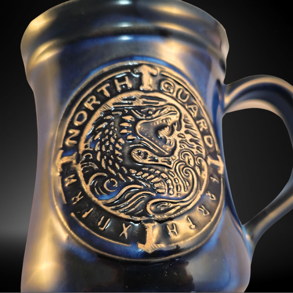 Der Krug ist ein Meisterwerk deutscher Handwerkskunst. Hergestellt aus erstklassiger Keramik, besticht dieses Trinkgefäß durch seine Langlebigkeit und sein elegantes Design. Das schwarz-blau-glänzende Finish symbolisiert das unergründliche Meer, während der senkrechte Henkel eine ergonomische Handhabung ermöglicht. Ob für Met, Kaffee oder Tee – dieser Krug ist für alle Deine Lieblingsgetränke geeignet.