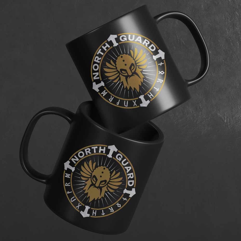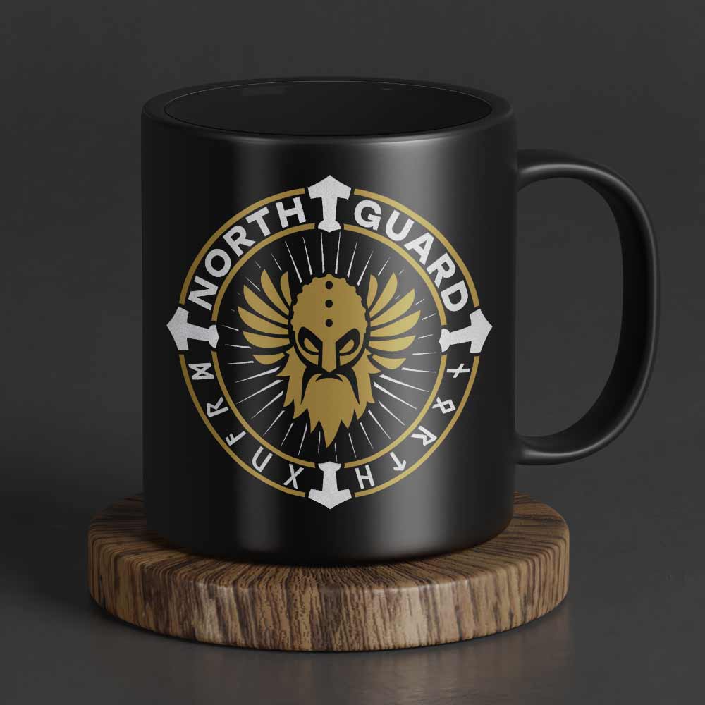 Moderne Wikinger trinken ihr schwarzes Lieblingsgebräu aus einer zeitgemäßen Kaffeetasse. NORTH GUARD – Wikinger trinken jedoch ihren Kaffee aus unserer epischen schwarzen Tasse mit dem NORTH GUARD - Logo. Das legendäre Trinkgefäß stammt aus einer berühmten Porzellan- und Keramikschmiede Midgards, gelegen in den finsteren Wäldern Bayerns. Die NORTH GUARD- Kaffeetasse richtet sich an alle müden Krieger, die gegen Montage, Wecker und gut gelaunte Menschen in die Schlacht ziehen müssen. Diese zeitlose Tasse in sattem schwarz ist nicht nur eine Augenweide für den täglichen Gebrauch oder besondere Anlässe, sie eignet sich auch hervorragend als Wurfgeschoss, für den Fall der Fälle. Erschaffen für all jene, die nicht mehr alle Tassen im Schrank haben.